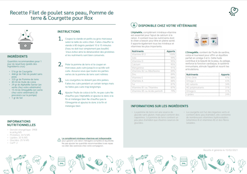 N'oubliez pas d'ajouter à la ration les compléments (que vous pouvez acheter ici) pour un toutou en pleine forme